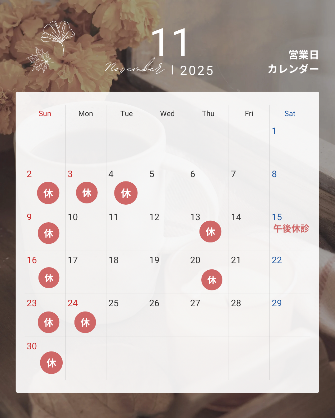 11月診療カレンダー🗓
